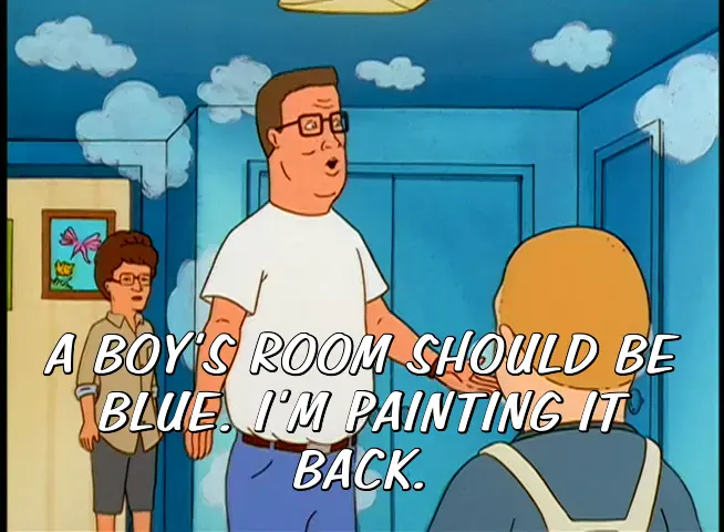 A BOY'S ROOM SHOULD BE BLUE. I'M PAINTING IT BACK.