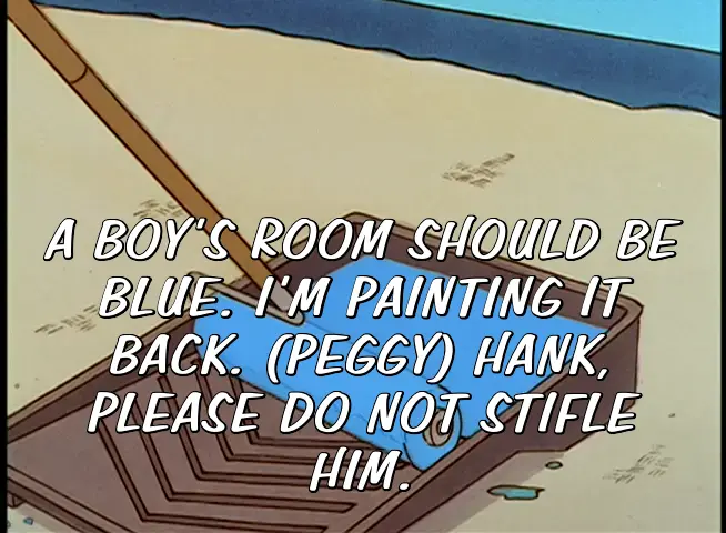 A BOY'S ROOM SHOULD BE BLUE. I'M PAINTING IT BACK. (PEGGY) HANK, PLEASE DO NOT STIFLE HIM.