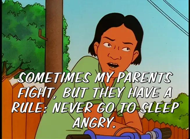 SOMETIMES MY PARENTS FIGHT, BUT THEY HAVE A RULE: NEVER GO TO SLEEP ANGRY.