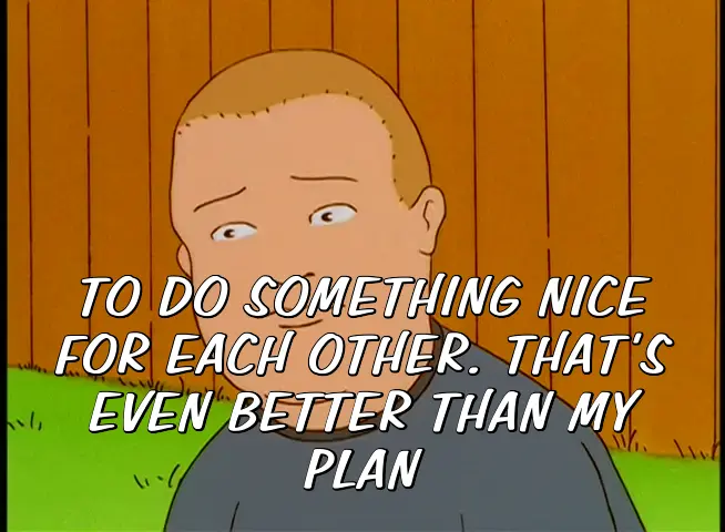 TO DO SOMETHING NICE FOR EACH OTHER. THAT'S EVEN BETTER THAN MY PLAN