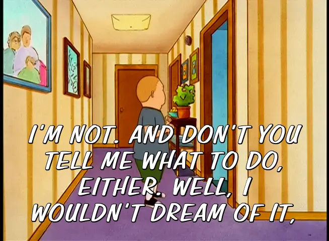 I'M NOT. AND DON'T YOU TELL ME WHAT TO DO, EITHER. WELL, I WOULDN'T DREAM OF IT,