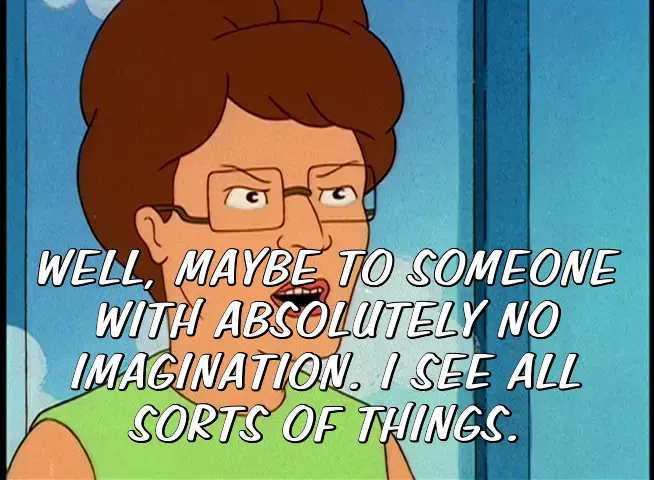 WELL, MAYBE TO SOMEONE WITH ABSOLUTELY NO IMAGINATION. I SEE ALL SORTS OF THINGS.