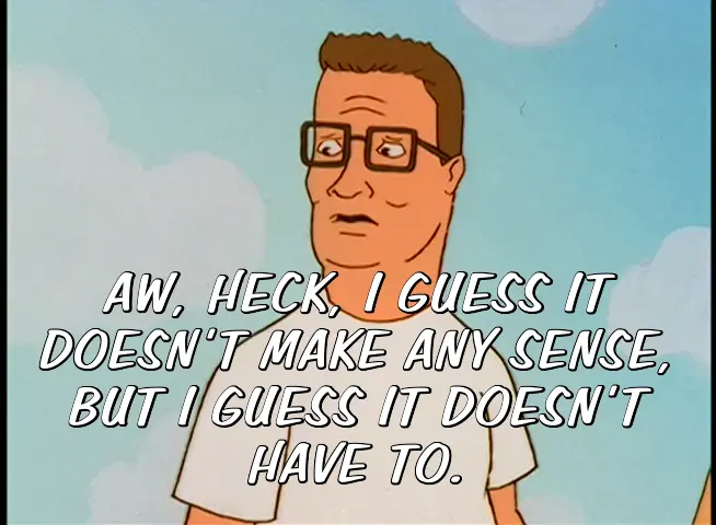AW, HECK, I GUESS IT DOESN'T MAKE ANY SENSE,