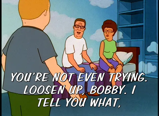 YOU'RE NOT EVEN TRYING. LOOSEN UP, BOBBY. I TELL YOU WHAT,