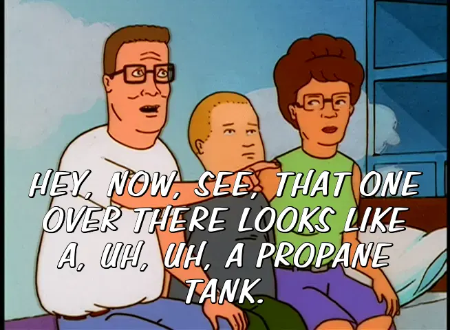 HEY, NOW, SEE, THAT ONE OVER THERE LOOKS LIKE A, UH, UH, A PROPANE TANK.