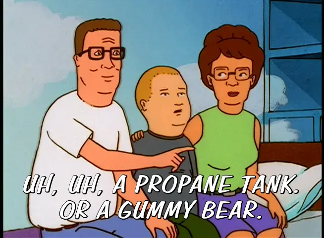 UH, UH, A PROPANE TANK. OR A GUMMY BEAR.