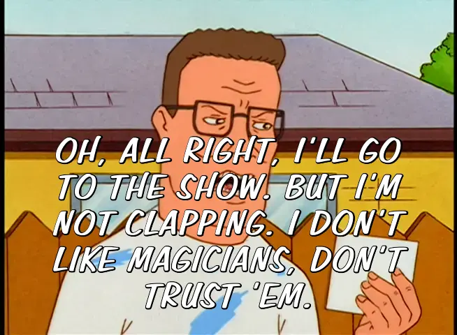 I DON'T LIKE MAGICIANS, DON'T TRUST 'EM.