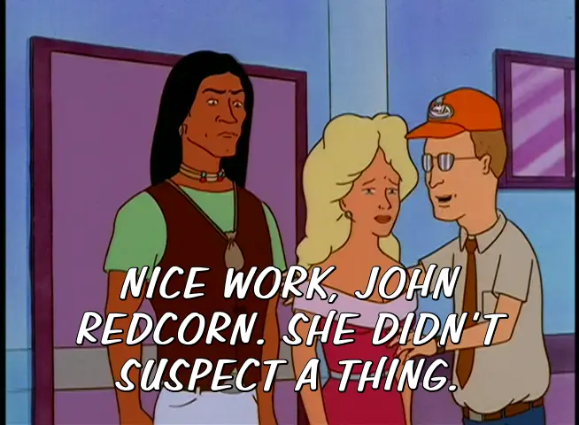 NICE WORK, JOHN REDCORN. SHE DIDN'T SUSPECT A THING.