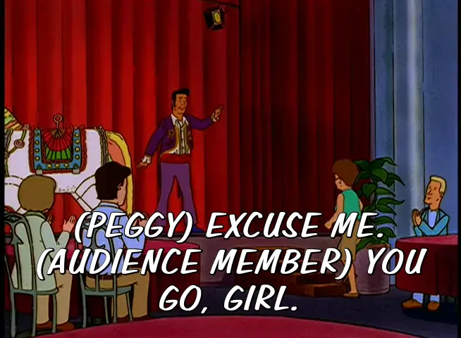 (PEGGY) EXCUSE ME. (AUDIENCE MEMBER) YOU GO, GIRL.