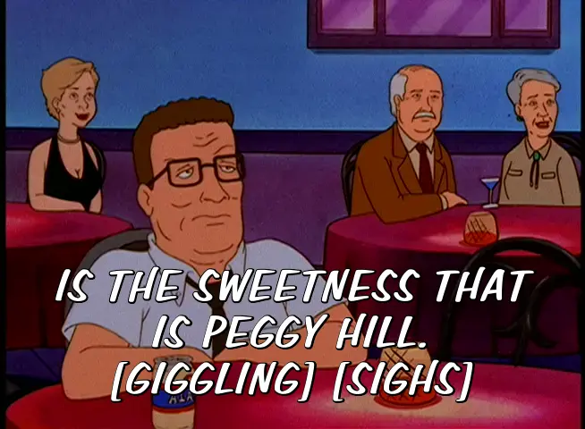 IS THE SWEETNESS THAT IS PEGGY HILL. [GIGGLING] [SIGHS]