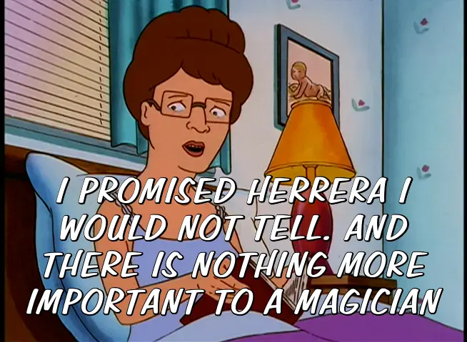 I PROMISED HERRERA I WOULD NOT TELL. AND THERE IS NOTHING MORE IMPORTANT TO A MAGICIAN