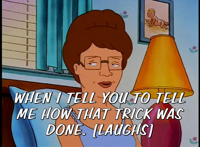 WHEN I TELL YOU TO TELL ME HOW THAT TRICK WAS DONE.