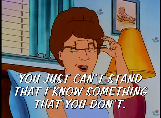 YOU JUST CAN'T STAND THAT I KNOW SOMETHING THAT YOU DON'T.