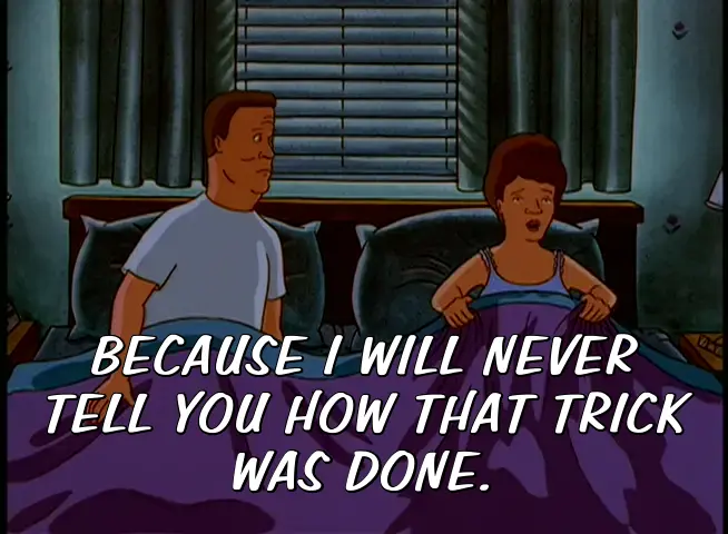 BECAUSE I WILL NEVER TELL YOU HOW THAT TRICK WAS DONE.