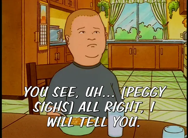 YOU SEE, UH... [PEGGY SIGHS] ALL RIGHT, I WILL TELL YOU.