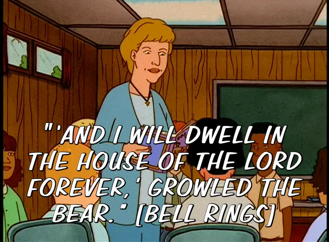 "'AND I WILL DWELL IN THE HOUSE OF THE LORD FOREVER,' GROWLED THE BEAR." [BELL RINGS]