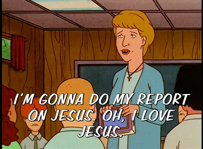 I'M GONNA DO MY REPORT ON JESUS. OH, I LOVE JESUS.