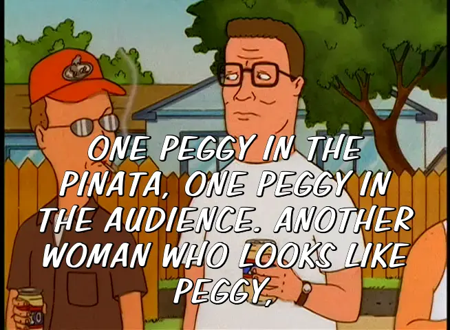 ONE PEGGY IN THE PINATA, ONE PEGGY IN THE AUDIENCE.