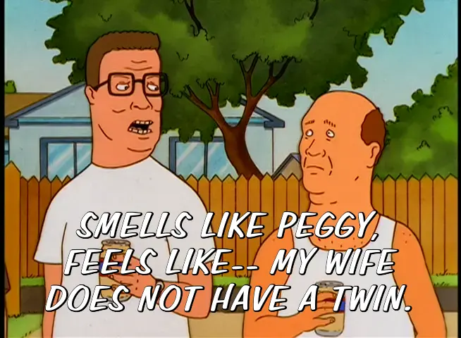 SMELLS LIKE PEGGY, FEELS LIKE-- MY WIFE DOES NOT HAVE A TWIN.
