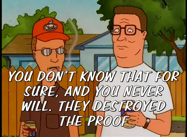 YOU DON'T KNOW THAT FOR SURE, AND YOU NEVER WILL. THEY DESTROYED THE PROOF