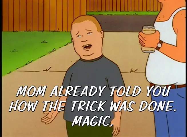 MOM ALREADY TOLD YOU HOW THE TRICK WAS DONE. MAGIC.
