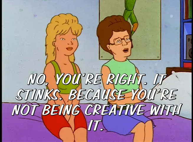 NO, YOU'RE RIGHT. IT STINKS. BECAUSE YOU'RE NOT BEING CREATIVE WITH IT.