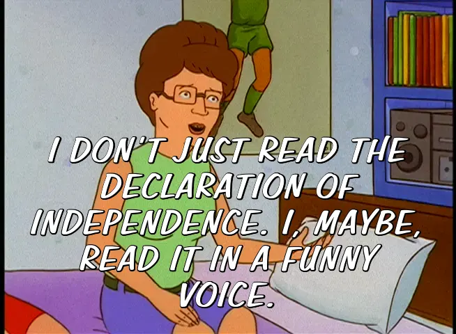 I DON'T JUST READ THE DECLARATION OF INDEPENDENCE. I, MAYBE, READ IT IN A FUNNY VOICE.