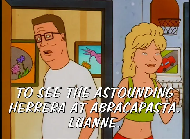 TO SEE THE ASTOUNDING HERRERA AT ABRACAPASTA. LUANNE.