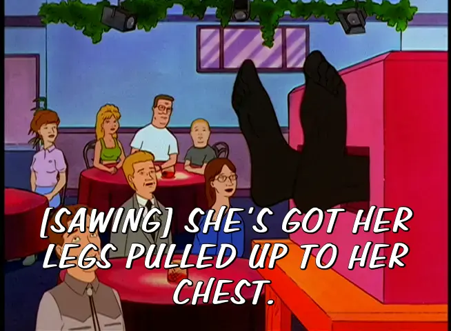 SHE'S GOT HER LEGS PULLED UP TO HER CHEST.