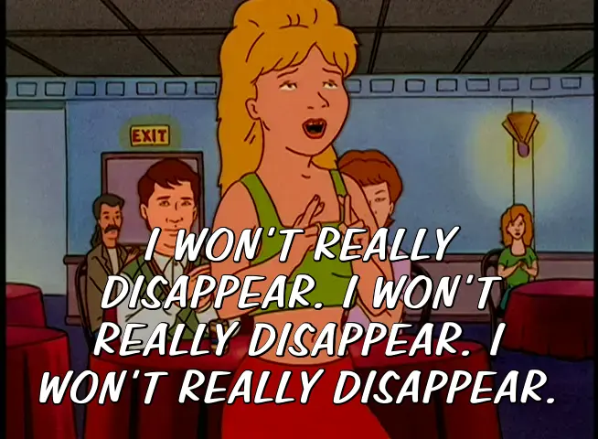 I WON'T REALLY DISAPPEAR. I WON'T REALLY DISAPPEAR. I WON'T REALLY DISAPPEAR.