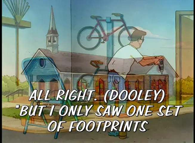 (DOOLEY) "BUT I ONLY SAW ONE SET OF FOOTPRINTS