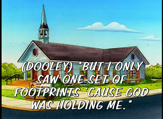 (DOOLEY) "BUT I ONLY SAW ONE SET OF FOOTPRINTS 'CAUSE GOD WAS HOLDING ME."