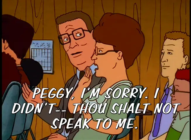 PEGGY, I'M SORRY. I DIDN'T-- THOU SHALT NOT SPEAK TO ME.