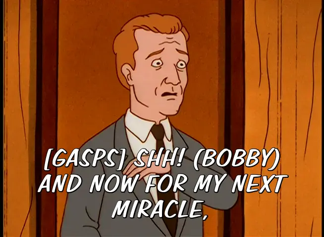 [GASPS] SHH! (BOBBY) AND NOW FOR MY NEXT MIRACLE,