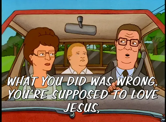 WHAT YOU DID WAS WRONG. YOU'RE SUPPOSED TO LOVE JESUS,